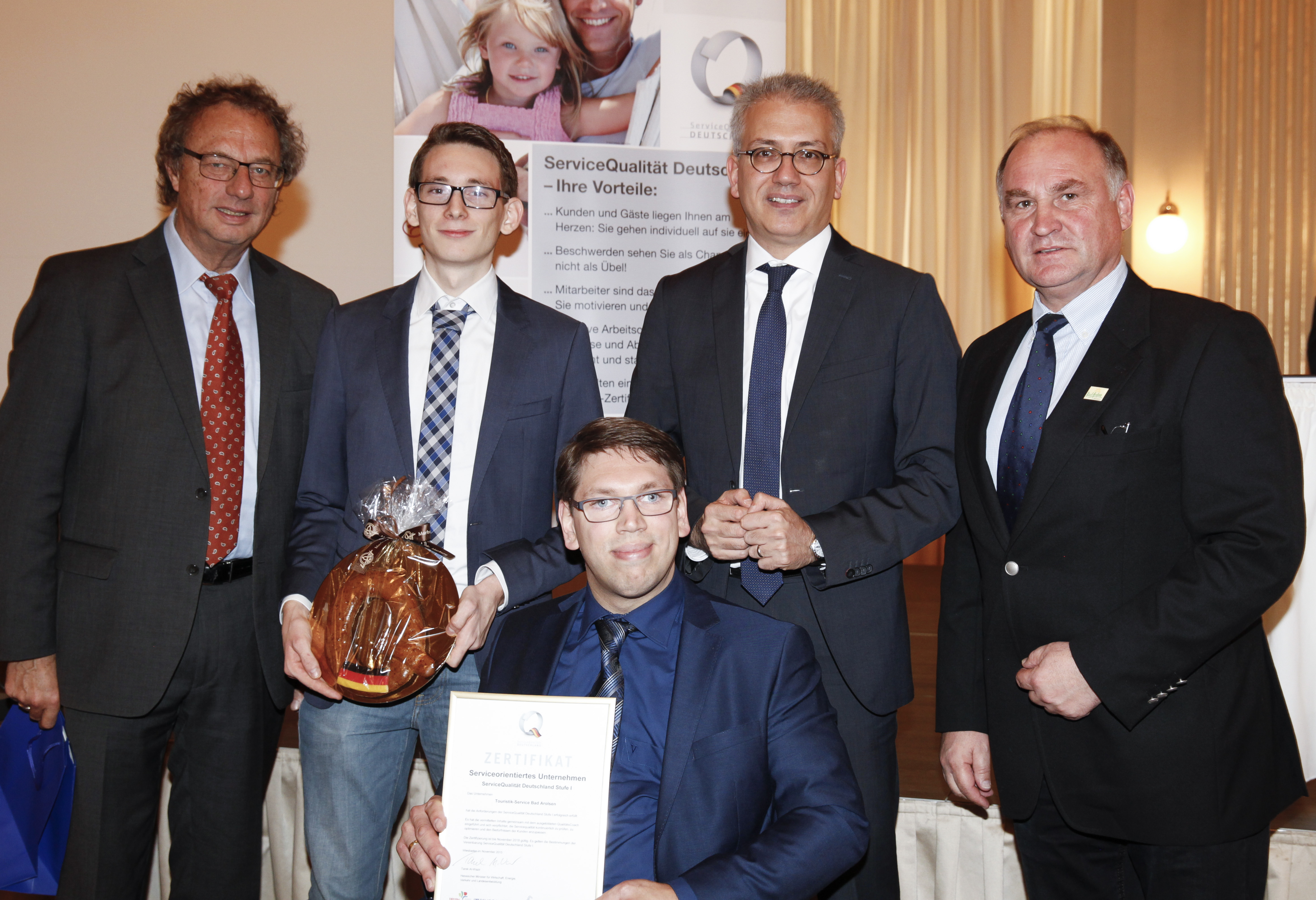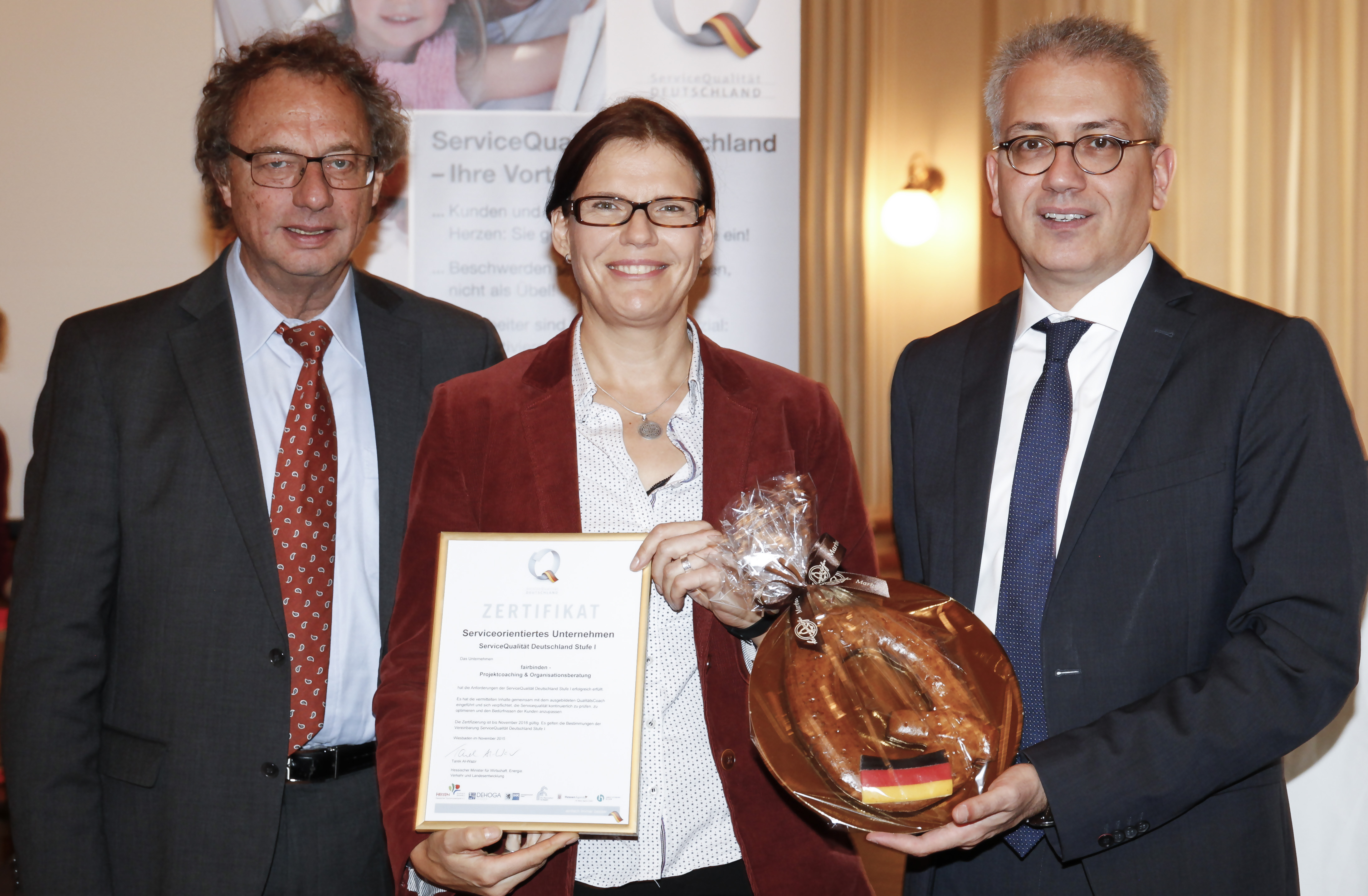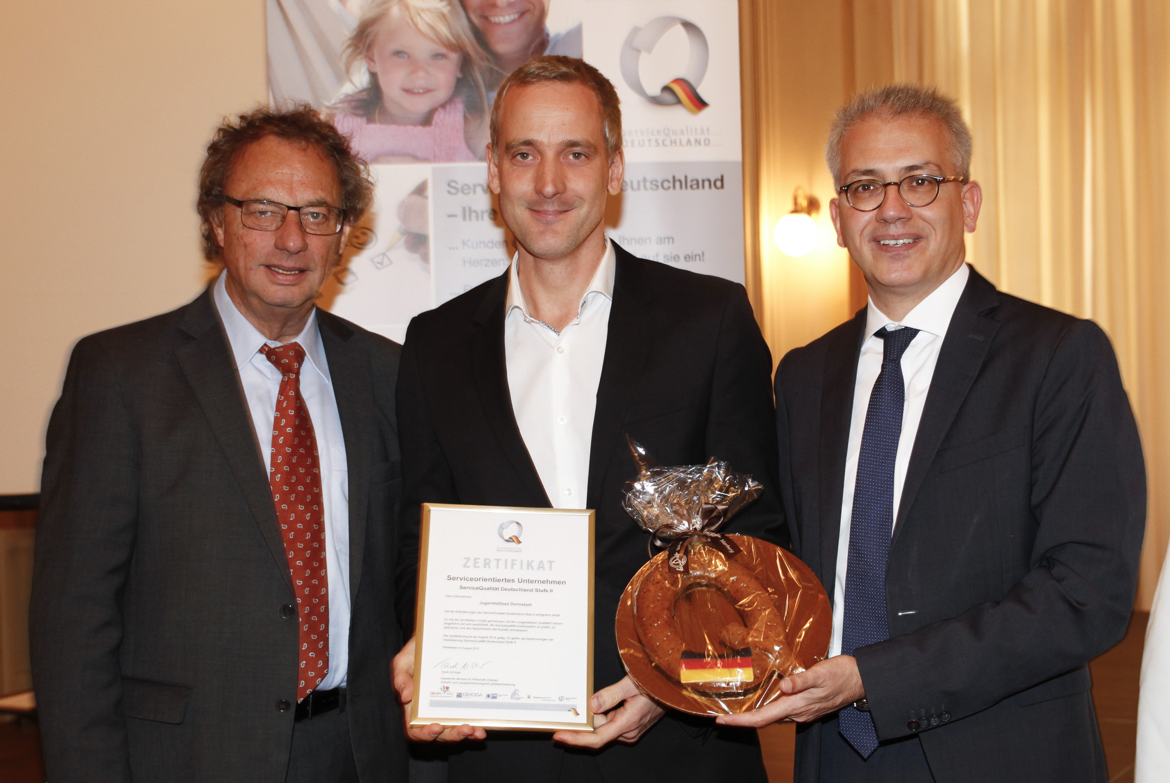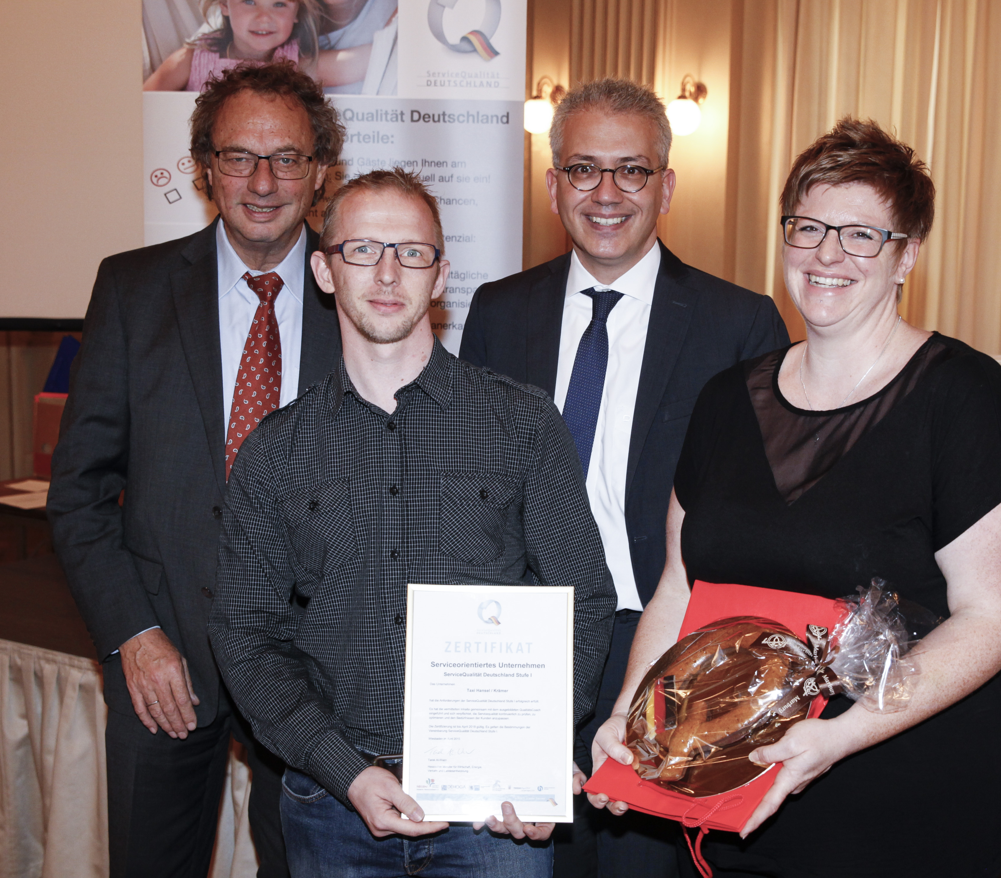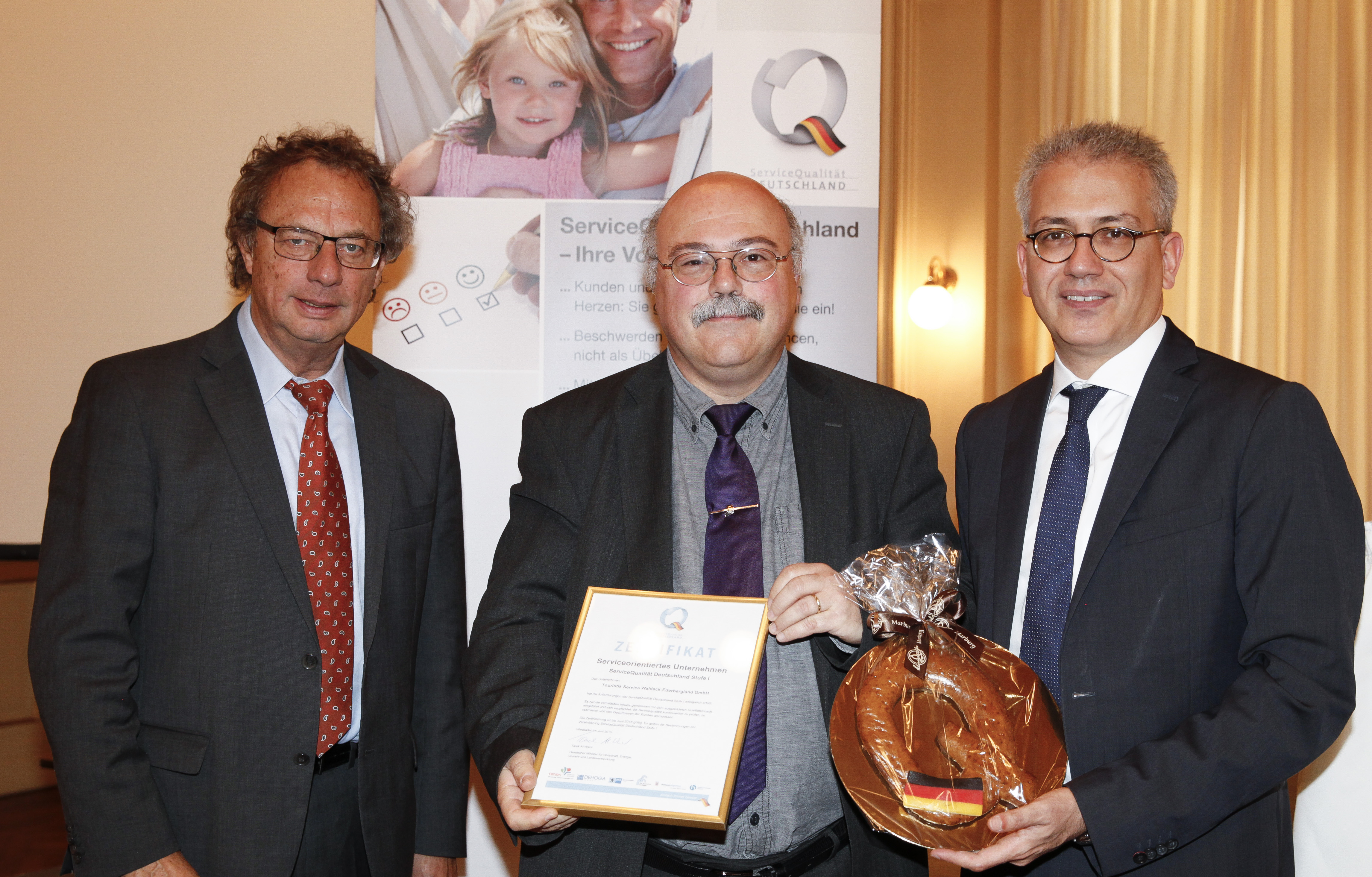 18 hessische Betriebe haben ihre Zertifizierungsurkunden erhalten. Unter ihnen sind Hotels, Tourist-Informationen, ein Campingplatz sowie eine Zahnarztpraxis, Reiseveranstalter sowie das erste Taxi-Unternehmen Hessens. Für die Zertifizierung mussten sie unter anderem Qualitätsstandards definieren, einen Plan zu ihrer Umsetzung formulieren und ein betriebliches Qualitätsmanagement installieren. Die Urkunden überreichten der hessische Staatsminister für Wirtschaft und Verkehr, Tarek Al-Wazir und der 1. Vorsitzende des Hessischen Tourismusverbandes, Harald Michel.