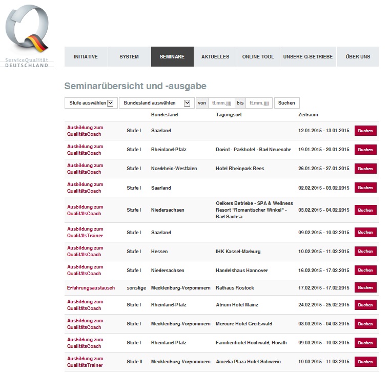 Seite dem 01. Januar ist die neue Website von ServiceQualität Deutschland online. Auf dieser finden Sie alle wichtigen Informationen zur Initiative und zu den Inhalten. Ebenfalls besteht damit die Möglichkeit bundesweit SQD Seminare online zu buchen. Schauen Sie im Bereich Seminare vorbei.