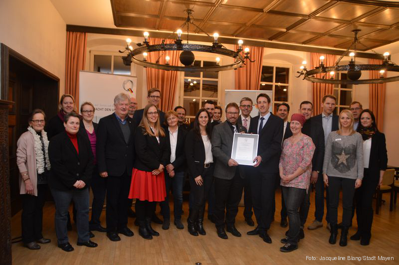 Kurz vor Weihnachten erreichte die Koordinatorinnen dann die freudige Nachricht: Mayen ist für weitere drei Jahre als QualitätsStadt ausgezeichnet! Dabei lobte die Prüfstelle die „gute Arbeit“. „Die Rezertifizierung ist ein Beleg und Zeichen für die Kunden, dass Qualität nicht nur kurzfristig gedacht wird, sondern als nachhaltiger Faktor und dauerhafter Prozess erkannt wurde und die Bemühungen kontinuierlich am Laufen gehalten werden“, so die ServiceQualität Deutschland in ihrem Prüfbericht.