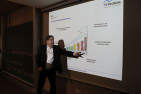 Nach diesem Austausch gehörte den Studierenden aus dem 3. Semester ITM/BA die Bühne. Diese stellten ein Fallstudienprojekt vor, welches sie in Zusammenarbeit mit dem SQD-Team erarbeitet hatten. Die Studierenden haben, unter Anleitung von Frau Dr. Carola May, einen Workshop für touristische Dienstleistungsunternehmen konzipiert, der zum Ziel hat, Servicelücken zu schließen und das eigene Angebot weiter zu verbessern. Der Workshop wurde bereits erfolgreich mit dem Team des Hotels ConventGarten in Rendsburg durchgeführt.